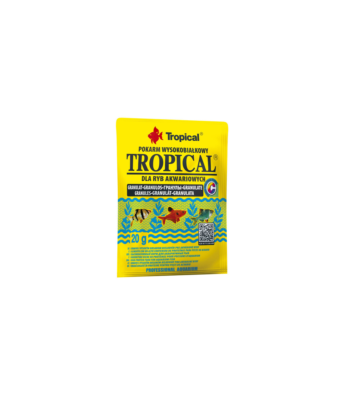 غذای ماهی گرانولpokarm wysokobiałkowy برند تروپیکال|Tropical گرنولاتی با پروتئین بالا مخصوص تغذیه روزانه ماهیان همهچیزخوار و گوشتخوار آکواریومی؛ غنی از پروتئین گیاهی و حیوانی، سرشار از اسیدهای آمینه ضروری، و تقویتشده با ویتامین C مقاومشده برای حفظ سلامت و رشد مناسب ماهیها.